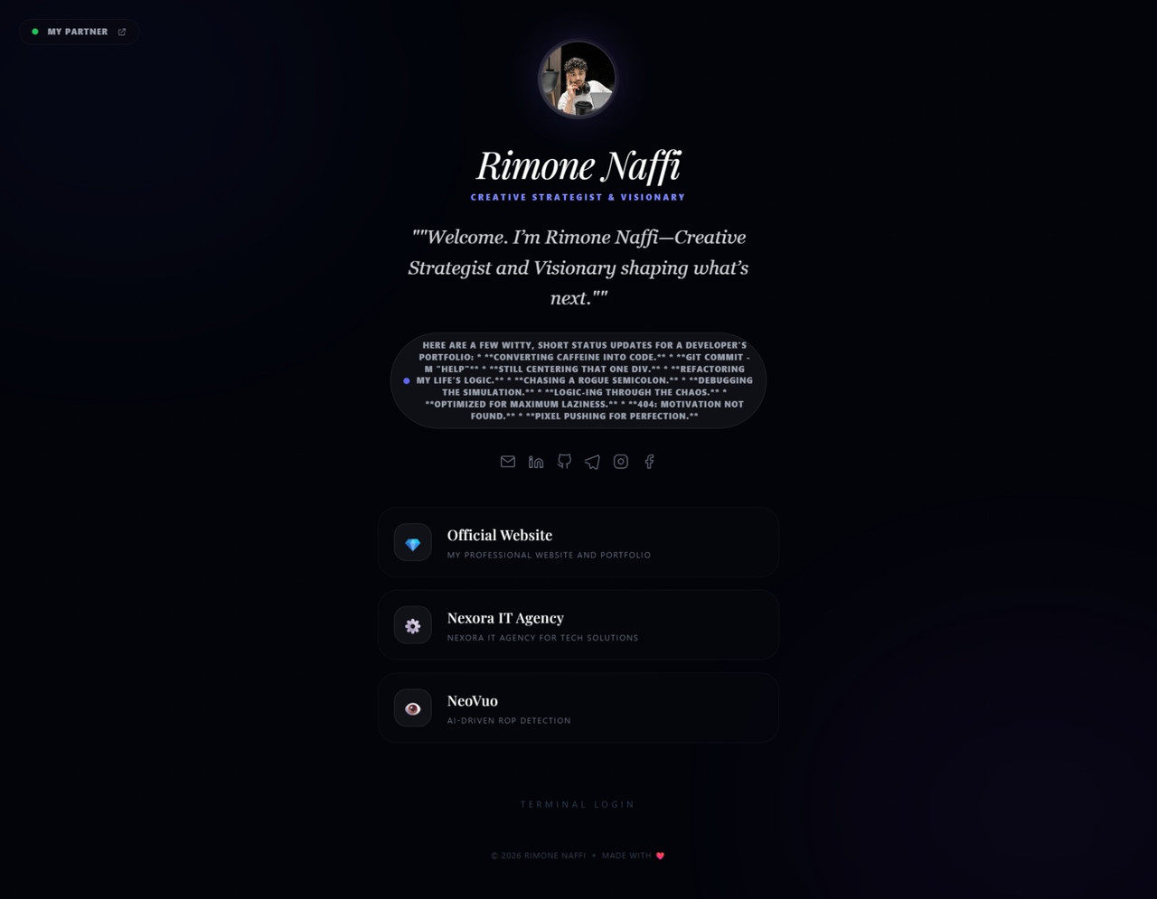 Custom Link-in-Bio Platform Developed a fast, responsive personal directory alternative to standard link-tree services. Built to consolidate my digital footprint into a single hub, optimizing for quick load times and clean UI/UX while giving me full control over the hosting and design of my professional links. with no coding dashboard implemented inside the site resources for updating anything with no coding skills with a secured login terminal.